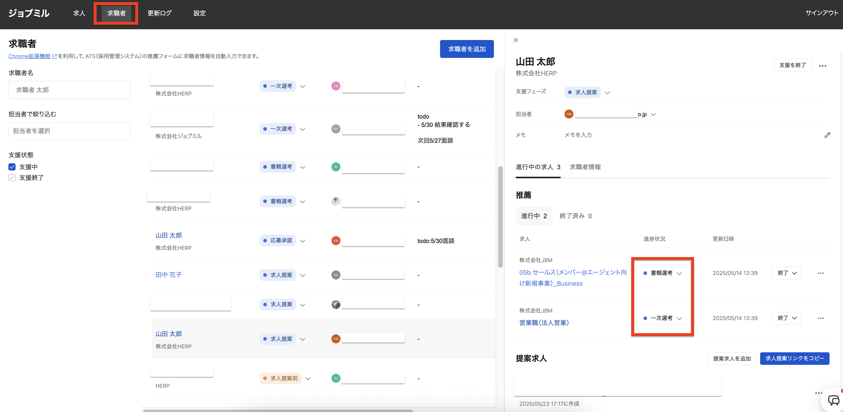 2. 該当の求職者を選択します。