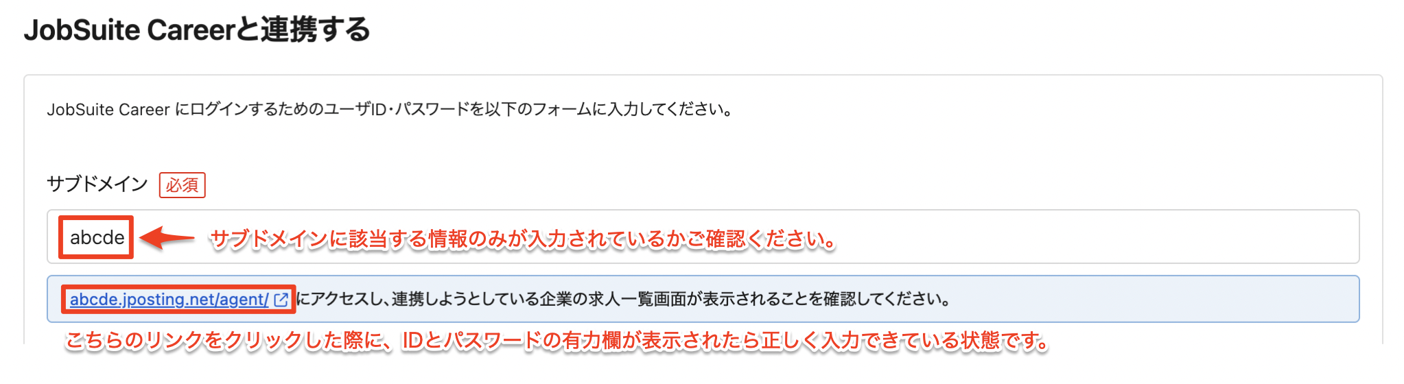・認証が2段階(メール認証がある)に分かれている場合は、ジョブミルとの連携ができません。